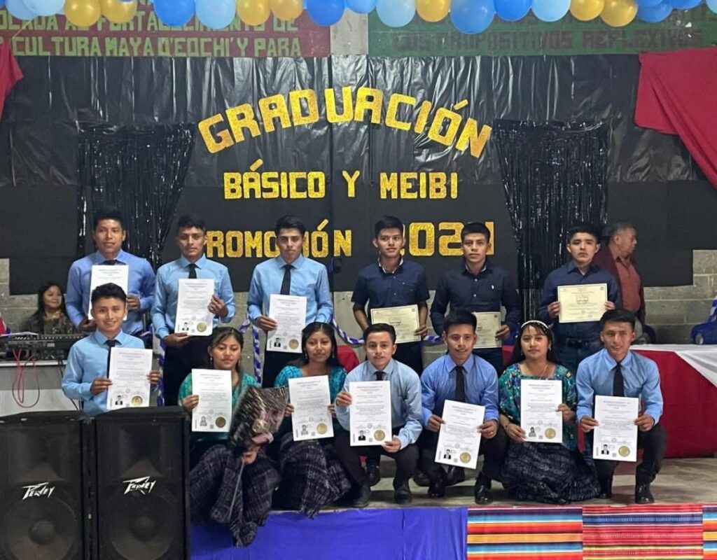 El 26 de noviembre de 2024, se graduaron catorce estudiantes: cuatro de básico y 10 de Magisterio (12º. Grado). Los graduados de Magisterio ahora están capacitados para ser maestros bilingües en una región donde muchos niños comienzan la escuela como hablantes monolingües de q’eqchi’ con poco o ningún conocimiento del español.